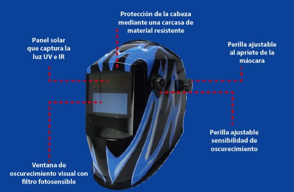 Partes principales de una careta para soldar